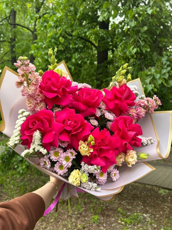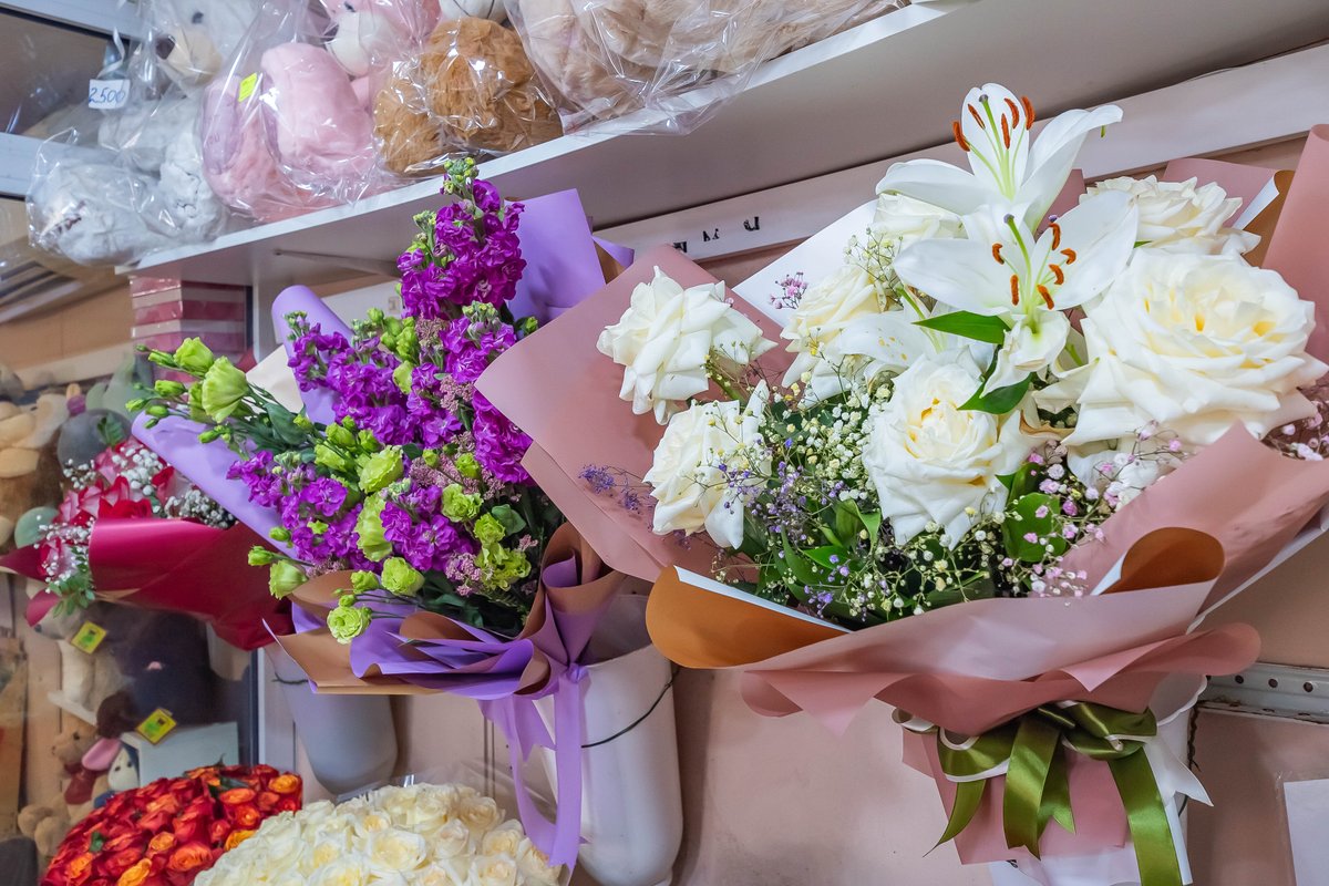 Также здесь можно дополнить букет мягкими игрушками, открытками, красиво упаковать подарок.